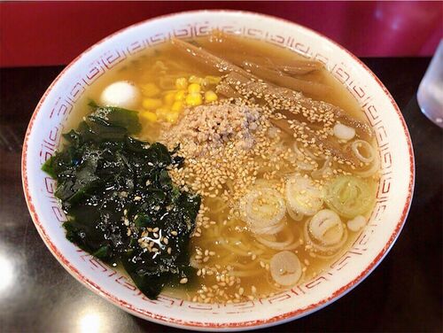 中華そば醤油 青森市富田の 「拉麺双葉」におじゃましました。 生協コスモス館の敷地内にある 無化調が売りのラーメン店です。 11時半過ぎの訪問で先客1名、後客4名。 ワンオペ。支払いは先払い制。 店主さんは高齢でマイペースな接客です。 座席に備え…