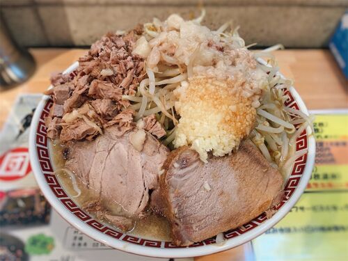 小ラーメン+くずし豚 青森市浪館にある 「ラーメンくめちゃん」におじゃましました。 二郎欲を抑えきれずに久方ぶりに青森へ。 休日に本格派二郎系ラーメンとなるとここ。 nomazuni.hatenablog.com 開店5分前着で待ち6名、配膳まで約20分。 小豚と迷い…