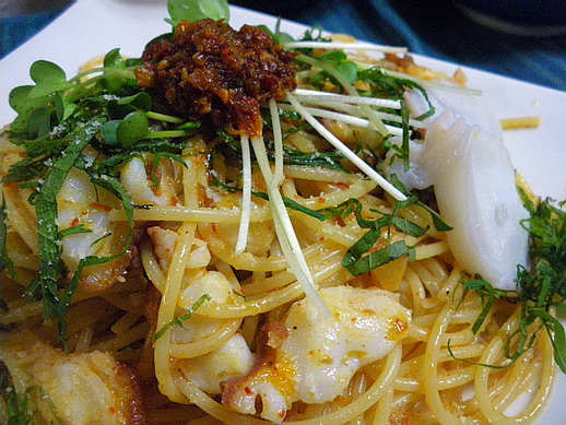仕上げにカイワレと青紫蘇をふりかけてみました。