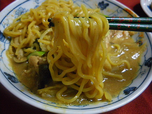 麺は札幌の何とか製麺(西山ではない)の黄色っぽい中細縮れ。