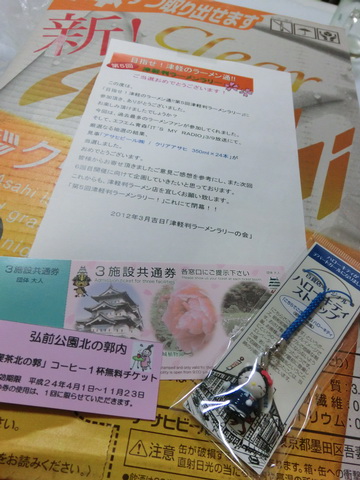 私と家族の名前で完走コースを3口応募したところ3口見事に当選してくれました♪「クリアアサヒ 350ml×24缶」「ハローキティストラップ」「3施設(弘前城史料館、植物園、藤田記念庭園)共通券+北の郭コーヒー無料チケット」私の狙いはソウル旅行だったので願いはかないませんでしたが…^^;満足な結果です♪ところでソウル旅行と交換したい方いませんか?(笑)さて、ラリー7店目はこちら