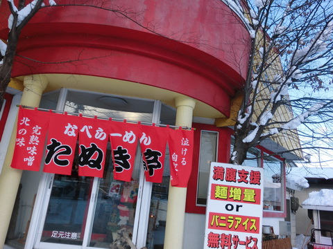 「なべらーめん たぬき亭」※地図はこちら※前回の記事はこちら深夜まで営業しているので遅い時間に伺うことの多いお店ですがラリーでスタンプをゲットするためにお昼に家族で訪問しました家族連れで混雑していますおつまみメニューもありお昼からアルコールもいただけるのでお母ちゃんに運転任せて昼から飲むにはもってこいのラーメン屋さんです(笑)