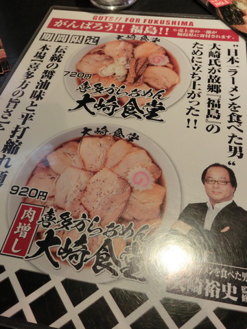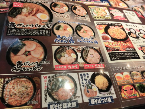 通常メニューはこちら個人的には「豚そば銀次郎」が好きなのですが大盛りができないのが痛いところです^^;なのでガッツリ食べたいときは定番の「嵐げんこつらあめん」を大盛りを注文します