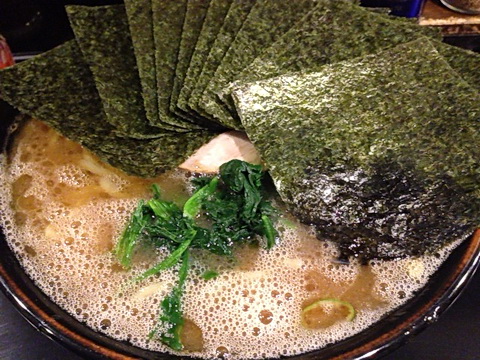 「中盛らーめん+海苔(油多め麺硬め)」こちらに来るとほぼこのオーダーです新味はこれまで1回、つけ麺は未食となっておりらーめん並もしくは中盛注文率が異常に高くなっていますというのも偏にこの「らーめん」の中毒性が強すぎることですね家系独特の注文システムで注文時に油の量、スープの濃さ、麺の硬さについて3段階から好みを伝えます油に関してはデフォでもかなりこってりなので少な目で注文している方も結構見受けられますが私はなんぼ胸焼けしてもいいので頑なに油多めを貫いています^^;