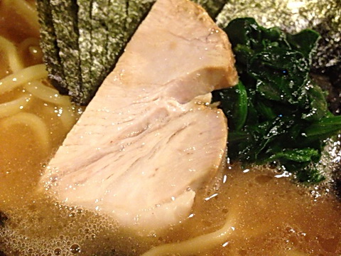 具材はほうれん草、ネギ少量、海苔、チャーシューチャーシューはだんだん小さくなっていますがなるべく値上げをせずクオリティを維持するためでしょう噛み応えのある厚切りロースで味付けは控えめ海苔はパリッと張りがあり、風味がしっかりしていて家系の濃厚な豚骨醤油スープをがっちり受け止める力強さがありますスープをたっぷり纏った海苔オンザライスは最高ですね^^
