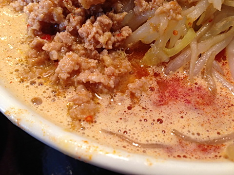 いいですね~この泡立ちっぷり^^コラーゲンたっぷりの濃厚味噌スープは辛さと甘さ、ほんのり酸味も加わり複雑な美味しさが感じられます^^さらに具材の野菜やひき肉の旨みにエビの旨みが混沌となり食べ終わる頃のスープはまさに旨みの塊濃厚さも相まってゲル状になっています^^;