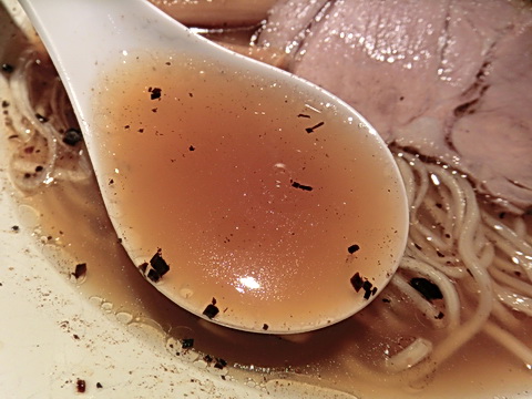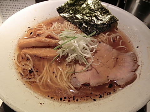 「不如帰」さて、遠征2件目都内は幡ヶ谷に移動しましたこちらもまた、以前より気になっていたお店ですなんでも蛤をメインにした出汁のラーメンとのこと少し小路に入ったところにあるのでお店の近くを数回通り越して漸く発見することができましたしかも、炎天下の外を歩き回るのはしんどい!おかげで連食でも2件目に着くころには空腹状態でした^^;待ちは2名、すぐに店内に入ることができ食券を購入メニューは醤油、塩が基本でそばとつけそばがあります木曜日の昼営業は「裏不如帰」として煮干そばを提供しているそうですこちらの「塩そば」はイタリア産トリュフオイルと塩漬けラードを使用しているのとのことでそちらも非常に惹かれましたが蛤の出汁を味わうために醤油にしました店内はカウンターのみのこじんまりした感じで暗めの照明でやや閉塞感が強いものの卓上はライトで照らされこれから配膳されるラーメンに気持ちが集中していきます厨房で黙々とラーメンを作り上げる店主さんと愛想が良くてきぱきと仕事をする助手さんを見ているとあっという間に配膳されました
