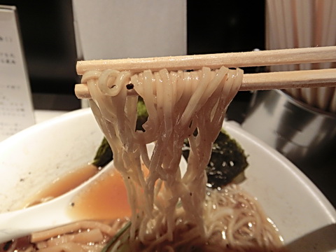 スープを啜るとガツン!と蛤ですね(笑)蛤以外にも魚介系や動物系出汁を合わせているのでしょうが蛤独特のエグミが一気に押し寄せてきますちょっとこれは個性的過ぎなんじゃない?と思いきや徐々に醤油ダレの輪郭が見えてますそれに伴いエグミが和らぎ、柔らかな口当たりと旨みが広がっていきました^^焦しネギが良いアクセントになっています蛤がグイグイ主張してくるスープですがきちんと麺や具材とも調和しラーメンとして成り立っていますね^^