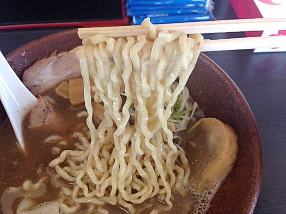 麺は専用の中太縮れ麺で柔らかめの食感。
