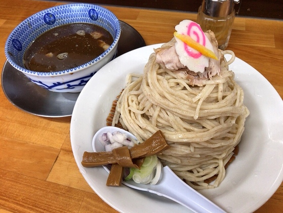 こんもりタワー状に盛られた麺が特徴的なひらこ屋のつけそば。