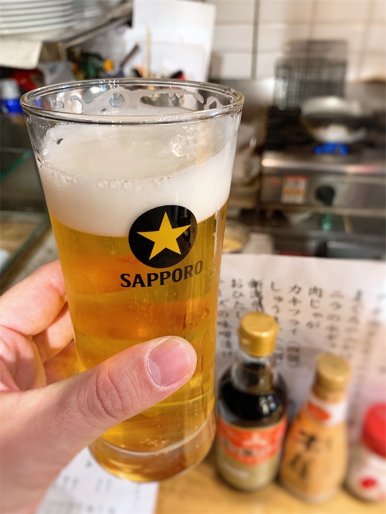 ビールはサッポロ。いい泡立っています。