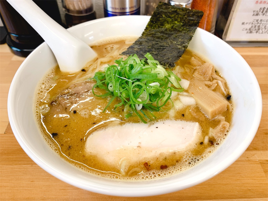 2023-07-30 麺処 駒繋 青森のラーメン 鶏白湯醤油らーめん(大もり) 弘前市野田にある 「麺処 駒繋」におじゃましました。 青森市から弘前に移転されて久しい、 鳥居式らーめん塾出身のラーメン店です。 nomazuni.hatenablog.com 今回は、 鶏白湯醤油らーめん(800円)を 大もり(110円)でいただきました。 いやー、おいしい。 つけ麺も良いけど鶏白湯も捨てがたい。 月並みなコメントながら、 こってりしているのにくどくないんですよね。 随所に丁寧な仕事を感じる鶏白湯ラーメンです。 ごちそうさまでした☆ にほんブログ村 青森県ランキング