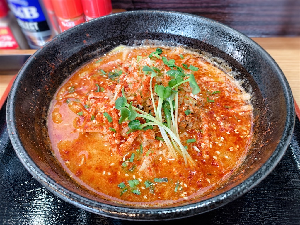 ネギ、もやし、貝割れのみずみずしい食感がアクセント。